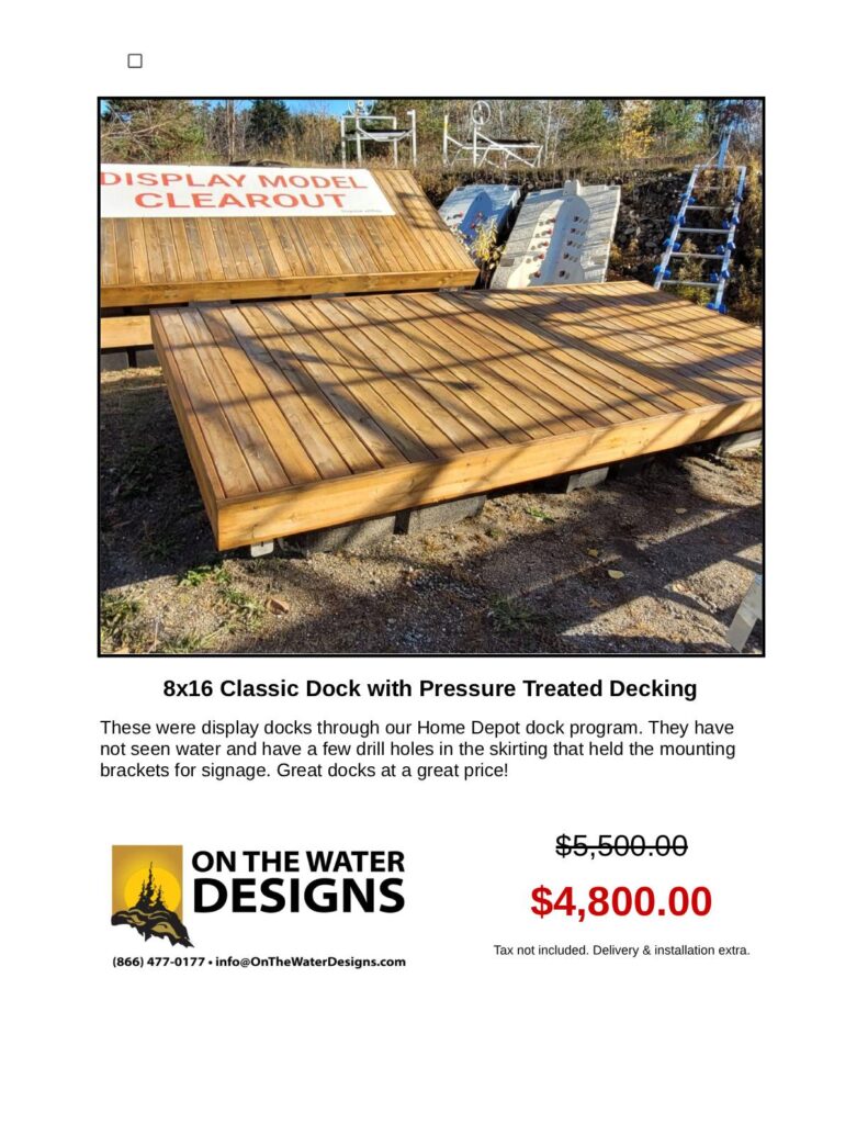 Clearance Deals on Docks, Dock Hardware and Accessories